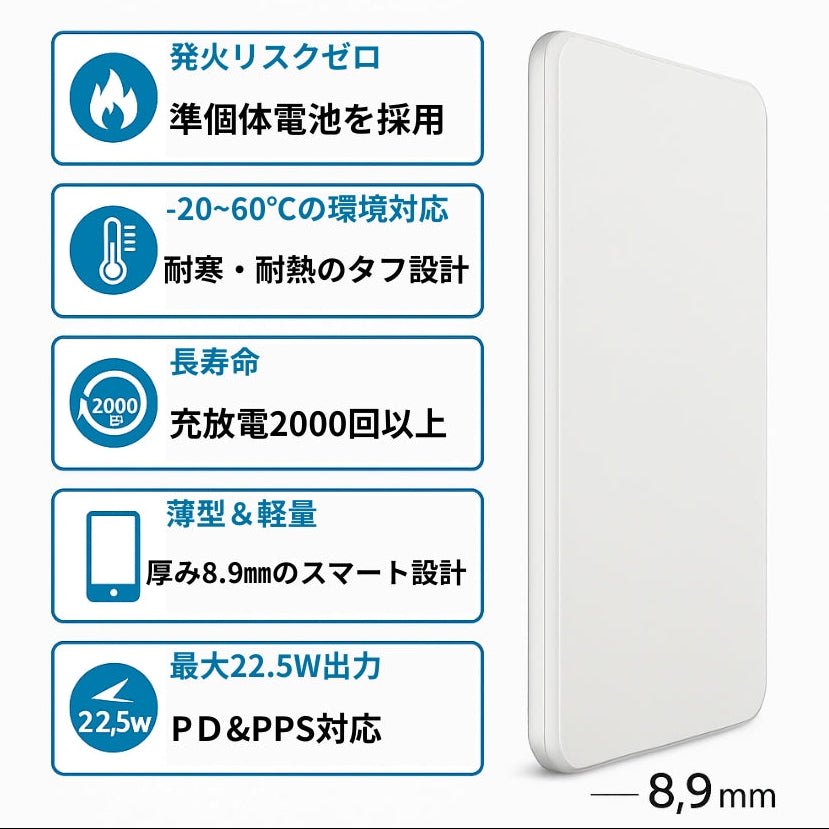 準個体モバイルバッテリー 5,000mAh PD22.5W対応(ホワイト)